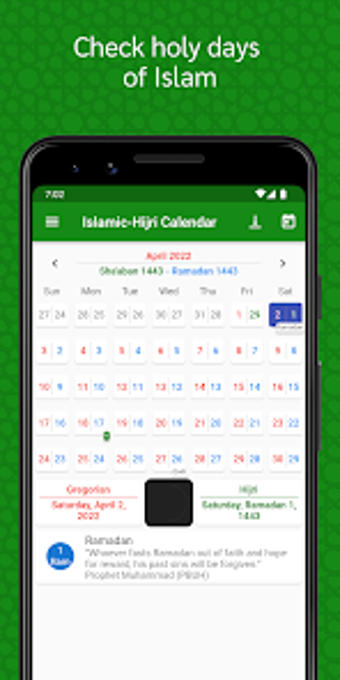 İslami Hicri Takvim uygulaması, kullanıcıların Hicri tarihlere erişimini kolaylaştıran bir araçtır. Kullanıcılar, ay boyunca Hicri tarihleri görebilir, önceki veya sonraki aylara kaydırarak geçiş yapabilir ve 1901 ile 2028 yılları arasındaki herhangi bir tarihe atlayabilirler. Bu özellik, özellikle doğum günü gibi önemli tarihleri kontrol etmek isteyen kullanıcılar için büyük bir avantaj sunmaktadır.